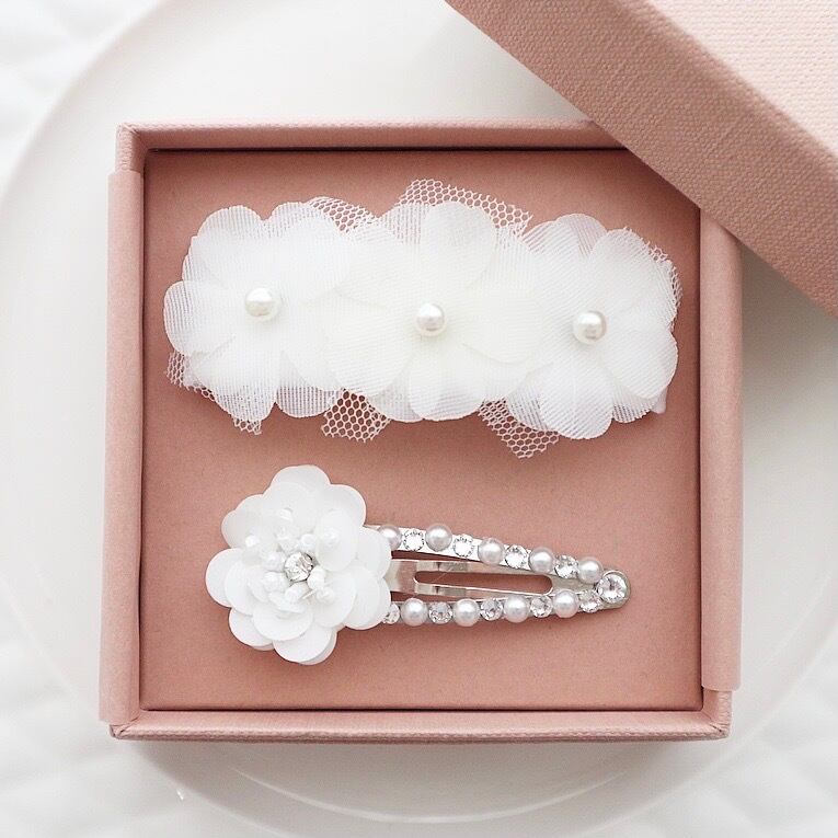 ホワイトフラワーバレッタ&パッチン セット