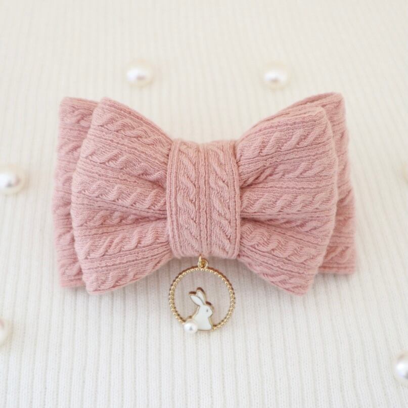 ニットリボン〜うさぎチャーム付き〜